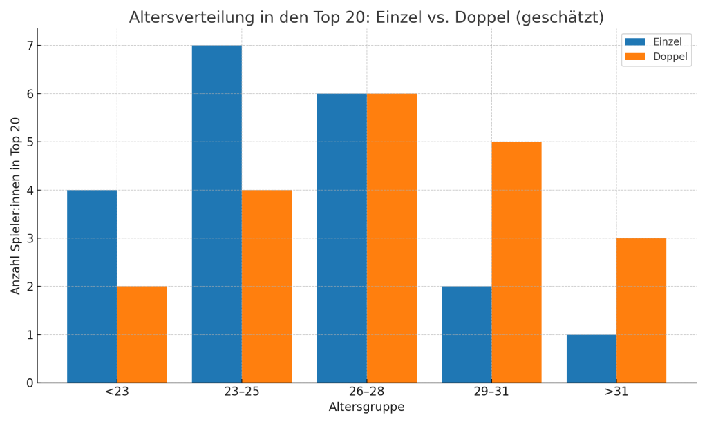 - Körperlich ist das Einzel belastender, im Schnitt ist die Karriere eines Einzelspielers kürzer als die eines Doppelspielers