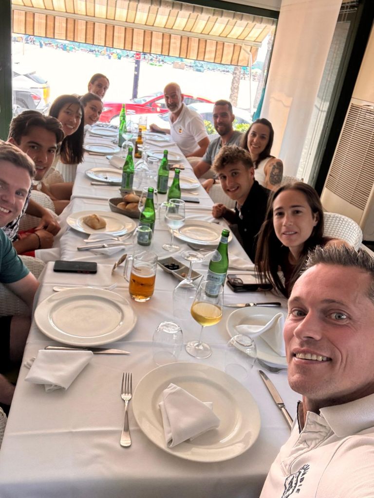 Nach der ersten Woche reisten die Kinder ab, und wir hatten das Wochenende, um paar Unternehmungen zu machen außerhalb der Halle. Gespielt wurde Spikeball, Padel und der Sonntag wurde verbracht am Strand mit einem leckeren gemeinsamen Essen im Restaurant anschließend. Erwähnenswert ist dabei die Arbeit von Raúl, Yaidel und mir nach 2-stündiger Arbeit unter der knallenden Sonne, mit dem Ergebnis einer einzigarten Sandburg in Form einer Schildkröte 😝. Dieser Sonnenbrand war es mir wert.