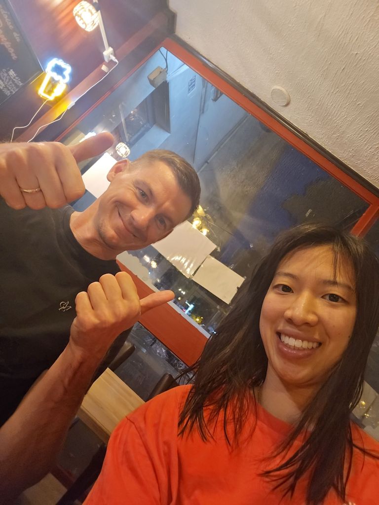 Und so kam auch schon Tag 3, die zweite Runde gegen niemand geringeres als die Nummer 1 der Welt, amtierende Olympiasiegerin und Weltmeisterin, An Se Young aus Korea. Ich habe schon einige Male gegen sie gespielt, mal mehr, mal weniger gut. Ich nahm mir vor konsequent zu spielen und die Initiative konstant zu suchen. So gelang mir eine schnelle Führung zum Anfang des Spiels. Nach 7:2 Führung kam aber An Se Young besser ins Spiel, ich hielt bis zur Mitte des Satzes gut gegen, aber dann kippte es letztendlich komplett und ich musste den Satz 15:21 abgeben. Im 2. Satz gelang es mir dann nicht in dem hektischen Spiel genug Kontrolle zu bewahren, das Feld wurde dadurch für meine Gegnerin zu klein, und sie ergriff jede Chance, um mich präzise auszukontern. Am Ende hieß es 7:21, das Ergebnis trügt vielleicht ein wenig, denn es waren einige sehr gute Ballwechsel dabei, aber An Se Young ist dafür bekannt auch zu Ende geglaubte Ballwechsel noch umzudrehen und für sich zu entscheiden.